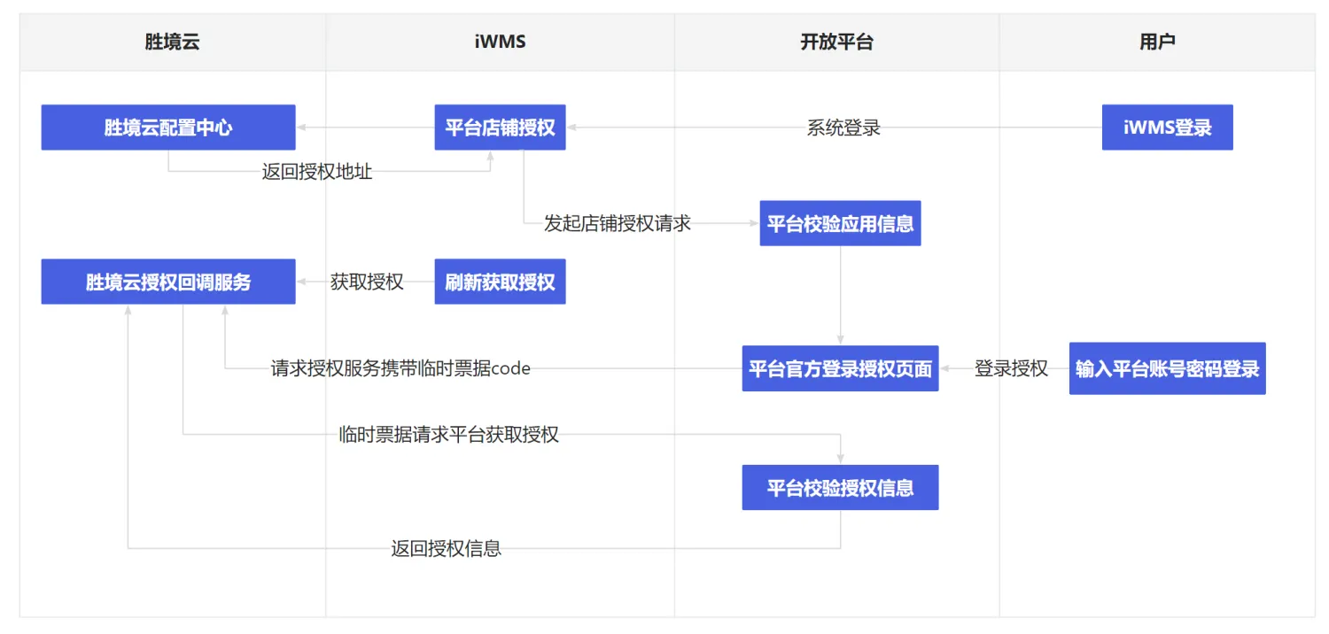 后续平台店铺授权统一在此界面进行,店铺授权成功后会自动生成对应的平台热敏配置项,无需手动后台配置。平台店铺授权流程图如下: